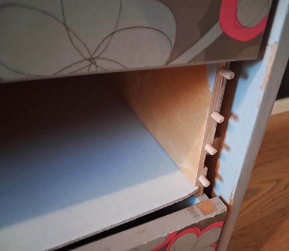 Gammalt skrivbord i furu skänkes
