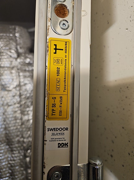 Bortskänkes - Säkerhetsdörr Swedoor EI30 – vänsterhängd (utan karm)