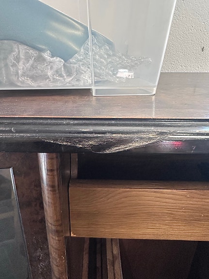 Gammalt skrivbord i furu skänkes