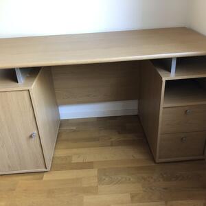 Praktiskt skrivbord med måtten 135 x 60 x 75 cm i mycket gott skick.