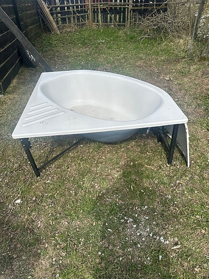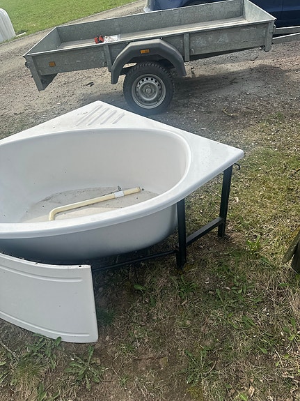 Bortskänkes Hörnbadkar vit med frontpanel