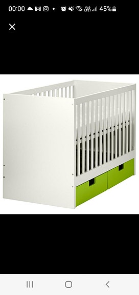 IKEA spjälsäng med förvaringslådor vit grön