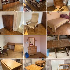 Bord, soffbord, byråer, bokhyllor, soffa, fåtölj