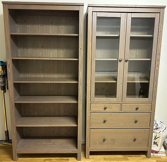 Hylla och vitrinskåp