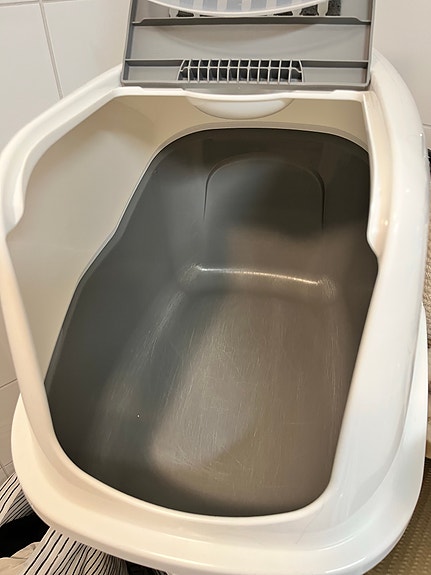 Kattlåda med huv vit/grå BORTSKÄNKES