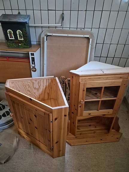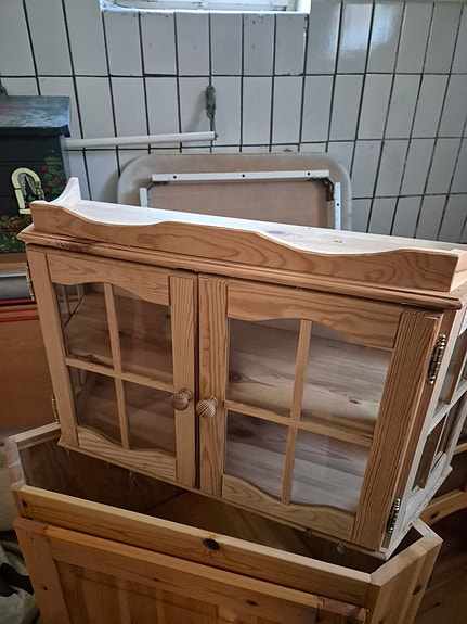 Hörnvitrinskåp och väggskåp i Furu bortskänkes