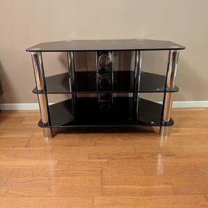 TV-bänk bortskänkes mot upphämtningTV-bänk i gott skick. Glas och metall, 80cm bredd, 45 djup, 53 höjd. Ganska tung, beh
