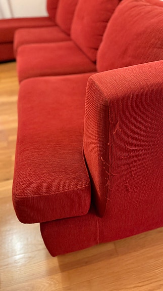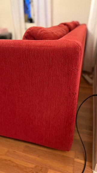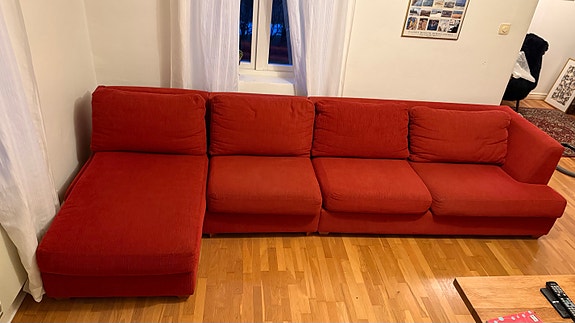 Röd soffa bortskänkes 3 delar