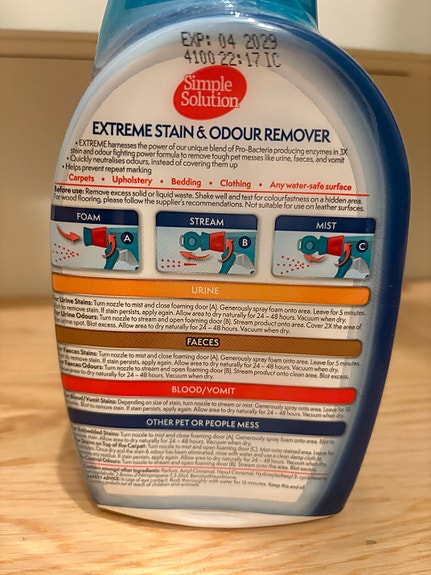 Gratis bortskänkes. 2 Halvfulla flaskor av urin off och stain&odour remover.