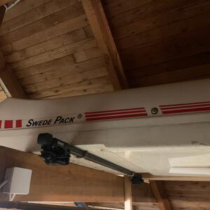 Gammal, stor takbox med lasthållare (som fästs på rails) bortskänkes. Har suttit på e