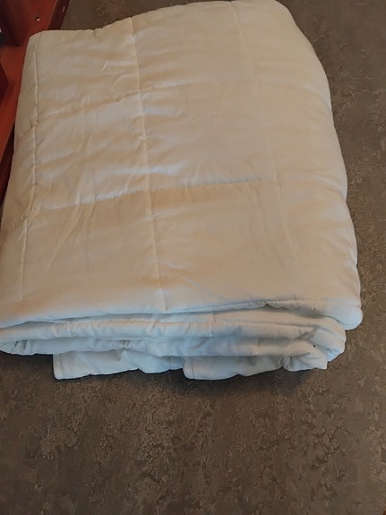 Bäddsoffa. Tyngdtäcke och 2 kassar leksaker bortskänkes