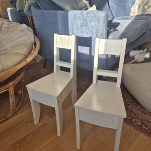 Två vita barnstolar bortskänkes. Finns på lidingö.