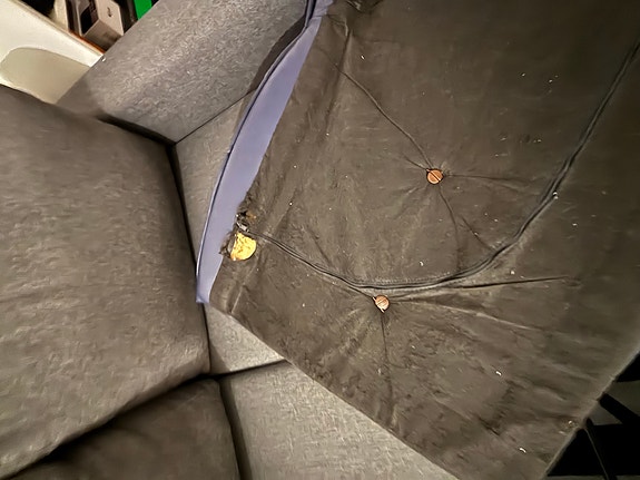 Mörkblå bäddsoffa skänks