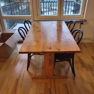 Köksbord 180x79x73. Fyra stolar. Finns i Frösunda i Solna. Skriv när ni kan komma och