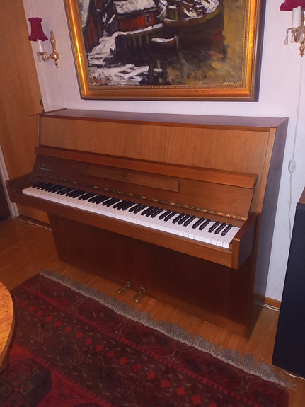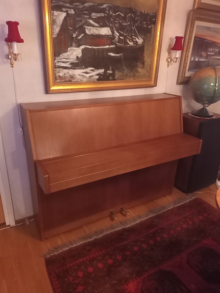 Akustiskt upprätt piano med pianopall trä