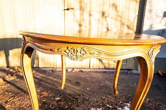 Äldre högt runt bord skänkes mot avhämtning