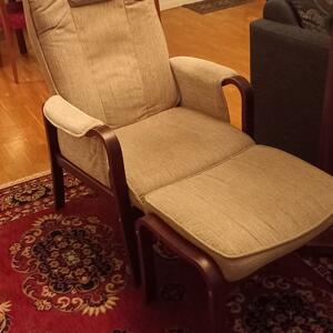 Fåtöljen går att ställa från upprätt läge till liggande. Mycket bekväm och i gott ski