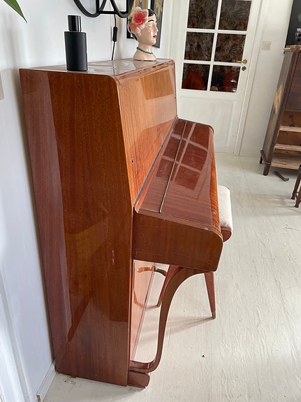 Akustiskt upprätt piano brun träfaner