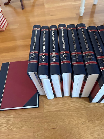 Nationalencyklopedin uppslagsverk bokserie blå röd