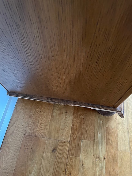 Gammalt skrivbord i furu skänkes